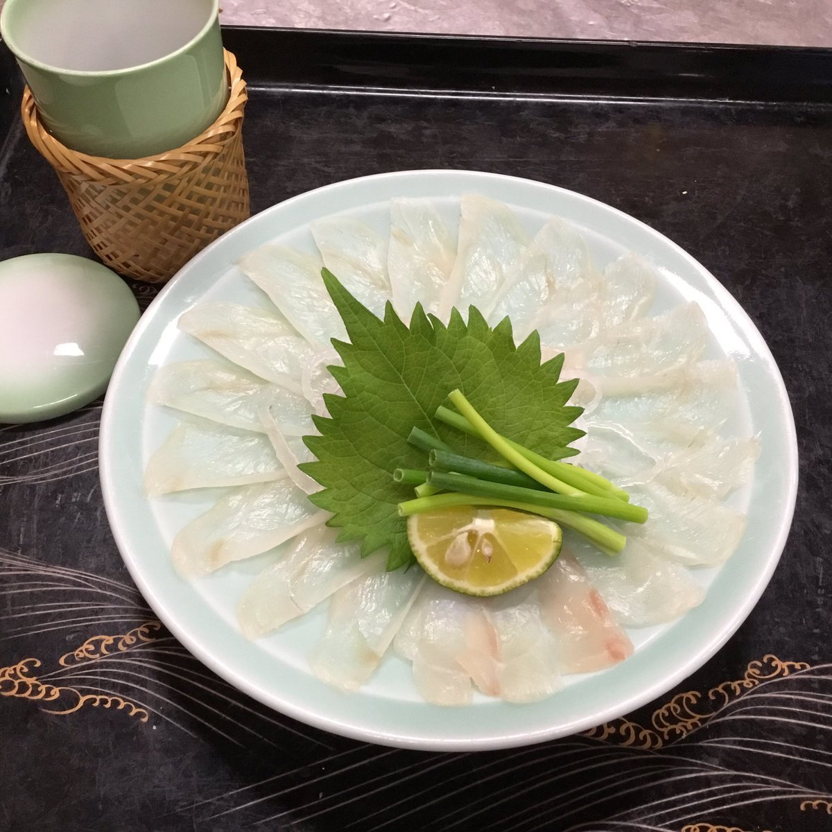 ◇ふく刺身、ヒレ酒