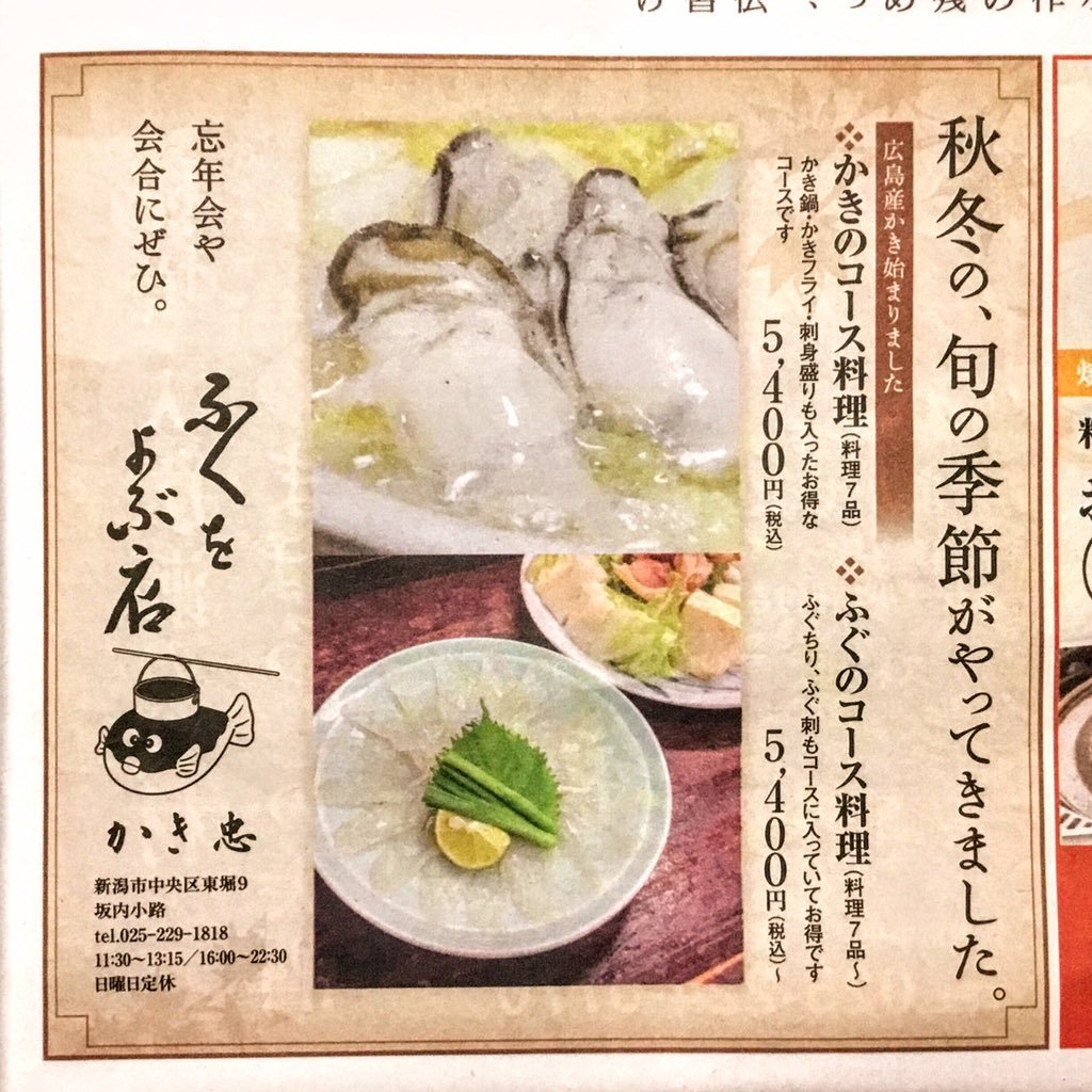 昨夜の新潟日報夕刊に広告を掲載