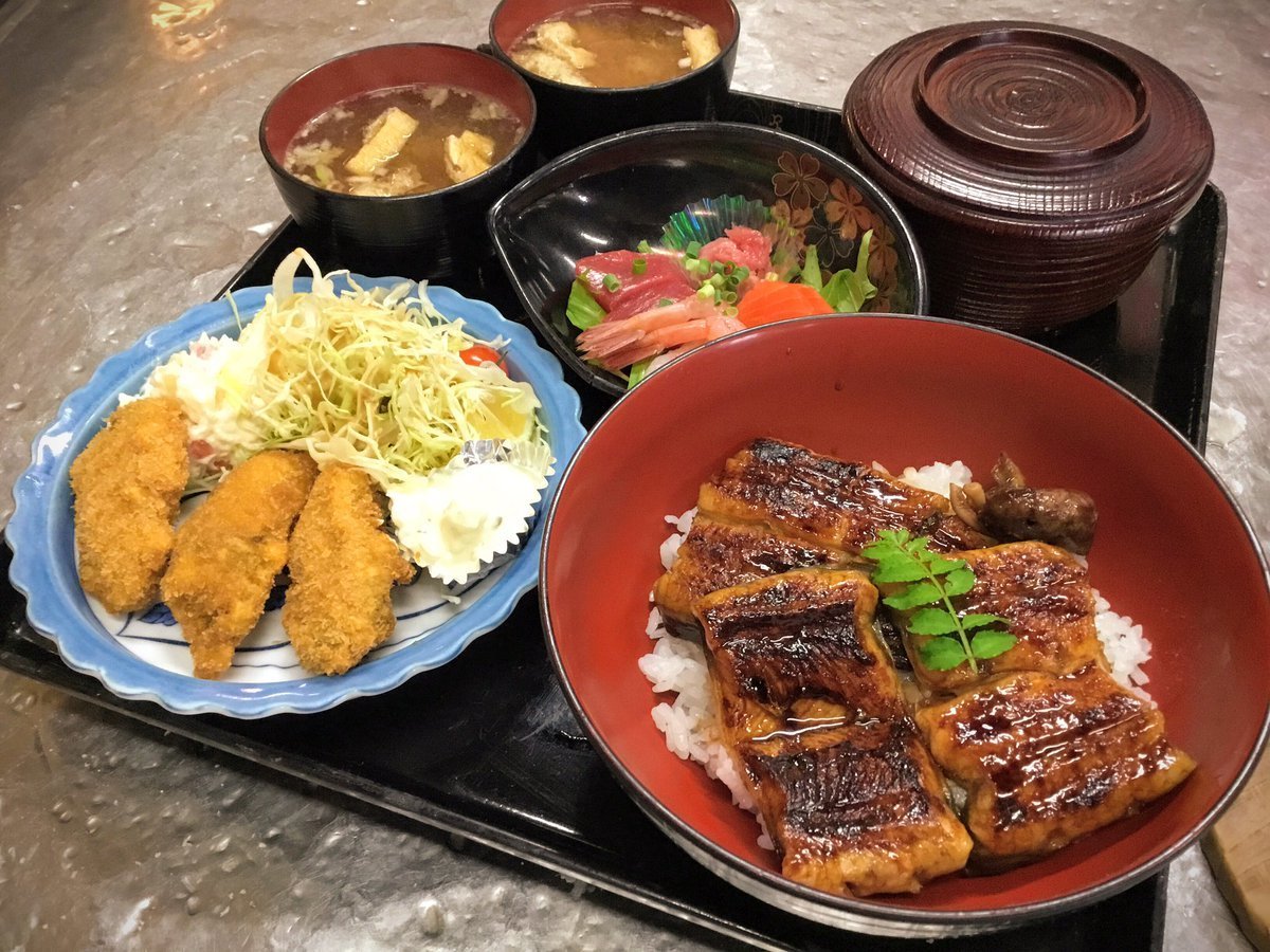 ◇うな丼、お刺身かきフライセット