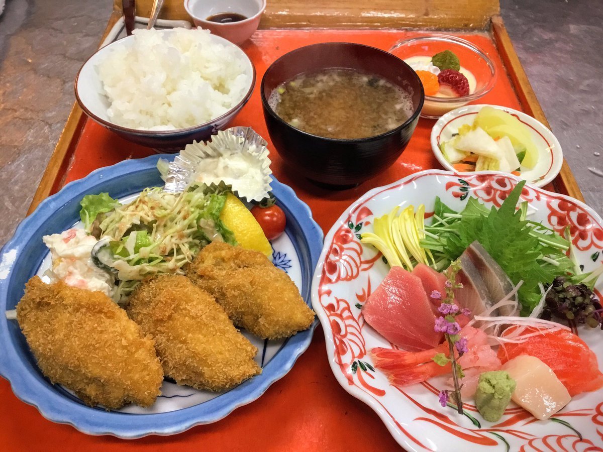 ◇夜のお刺身かきフライ定食