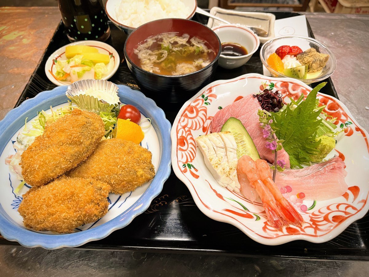 お刺身かきフライ定食