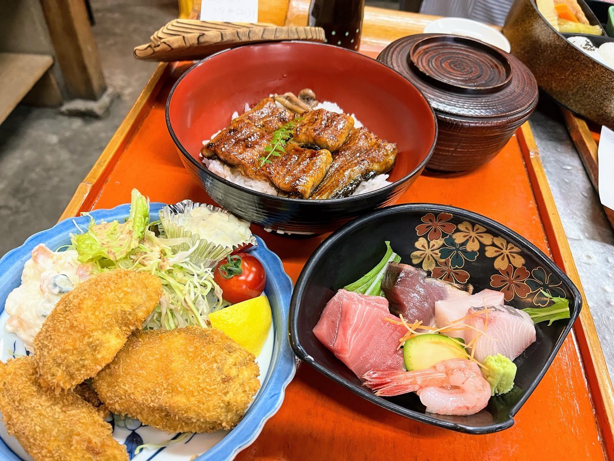 ◇お刺身かきフライ定食、うな丼