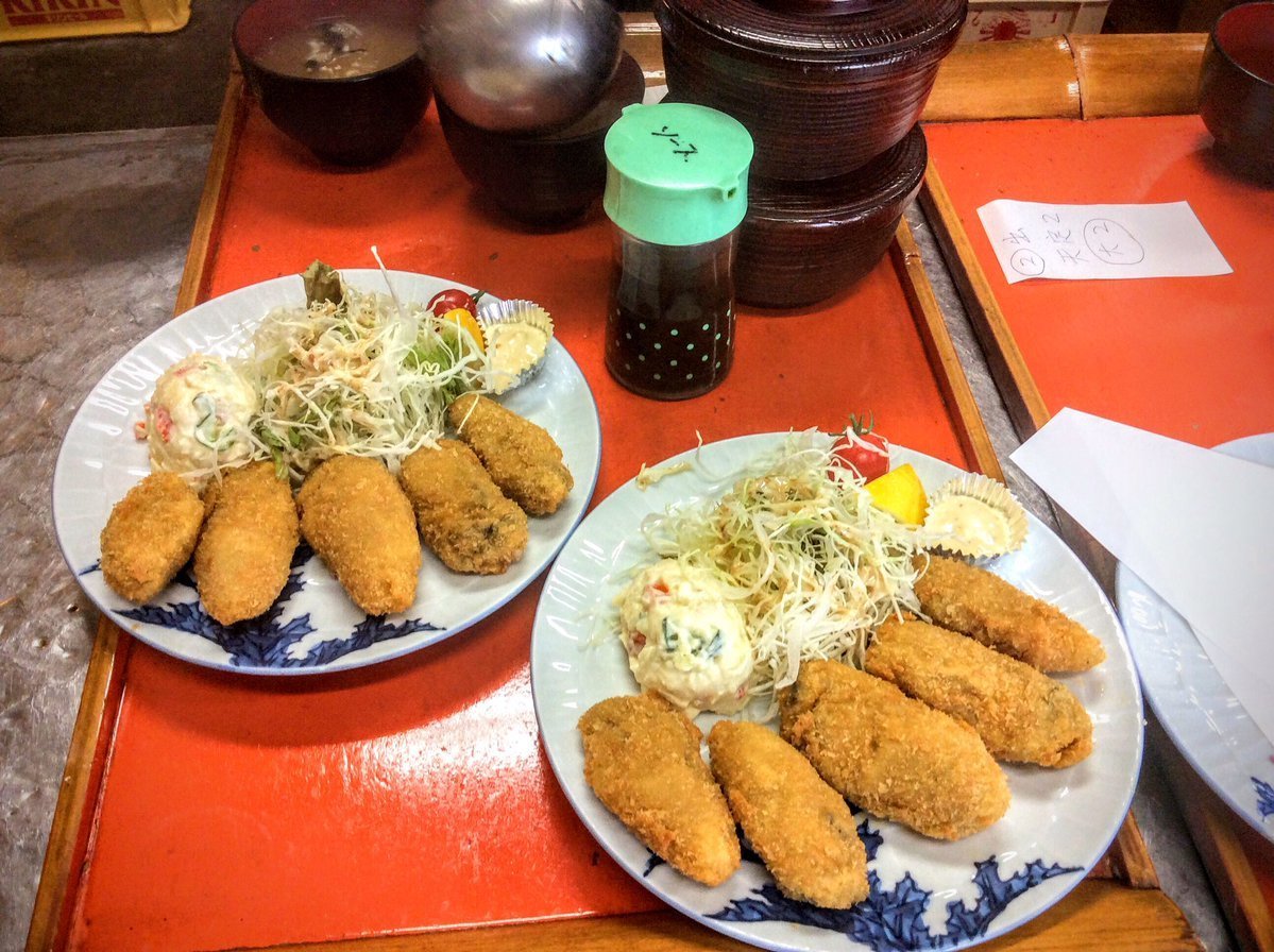 かきフライ定食です。