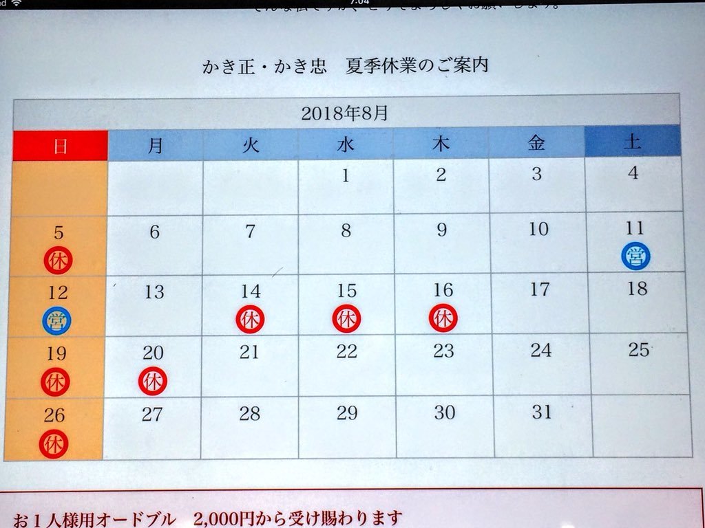 8月営業のご案内